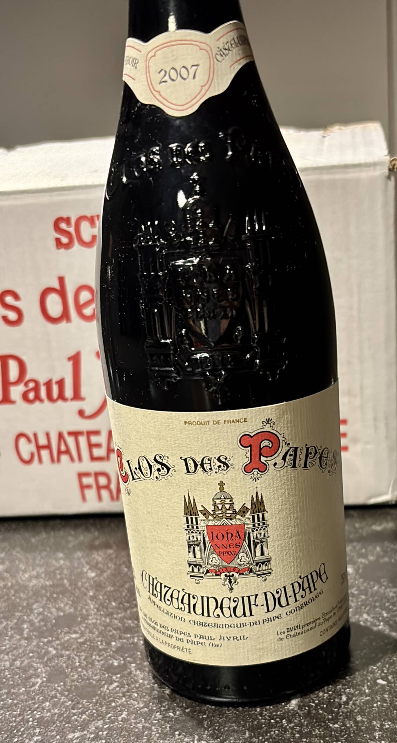 AccueilVins & SpiritueuxVINS ROUGES (France)Châteauneuf-du-Pape 2007 Clos des Papes -11% Châteauneuf-du-Pape 2007 Clos des Papes169.00€ Le prix initial était : 169.00€.150.00€Le prix actuel est : 150.00€. 6 en stock quantité de Châteauneuf-du-Pape 2007 Clos des Papes Ajouter au panier Catégories : Accueil, VINS ROUGES (France) Étiquette : à l'unité Référence 30362 Description Description NB: niveaux parfaits et étiquettes immaculées. Produits similaires Pommard 1990 Régis Rossignol 79.00€ Ajouter au panier Côte de Brouilly « cuvée Mélanie » 2024 M. et D. Bouland 125.00€ Ajouter au panier Rupture de stock ch. Trotanoy 2022 Pomerol (c. b. 3 bts) 825.00€ Lire la suite